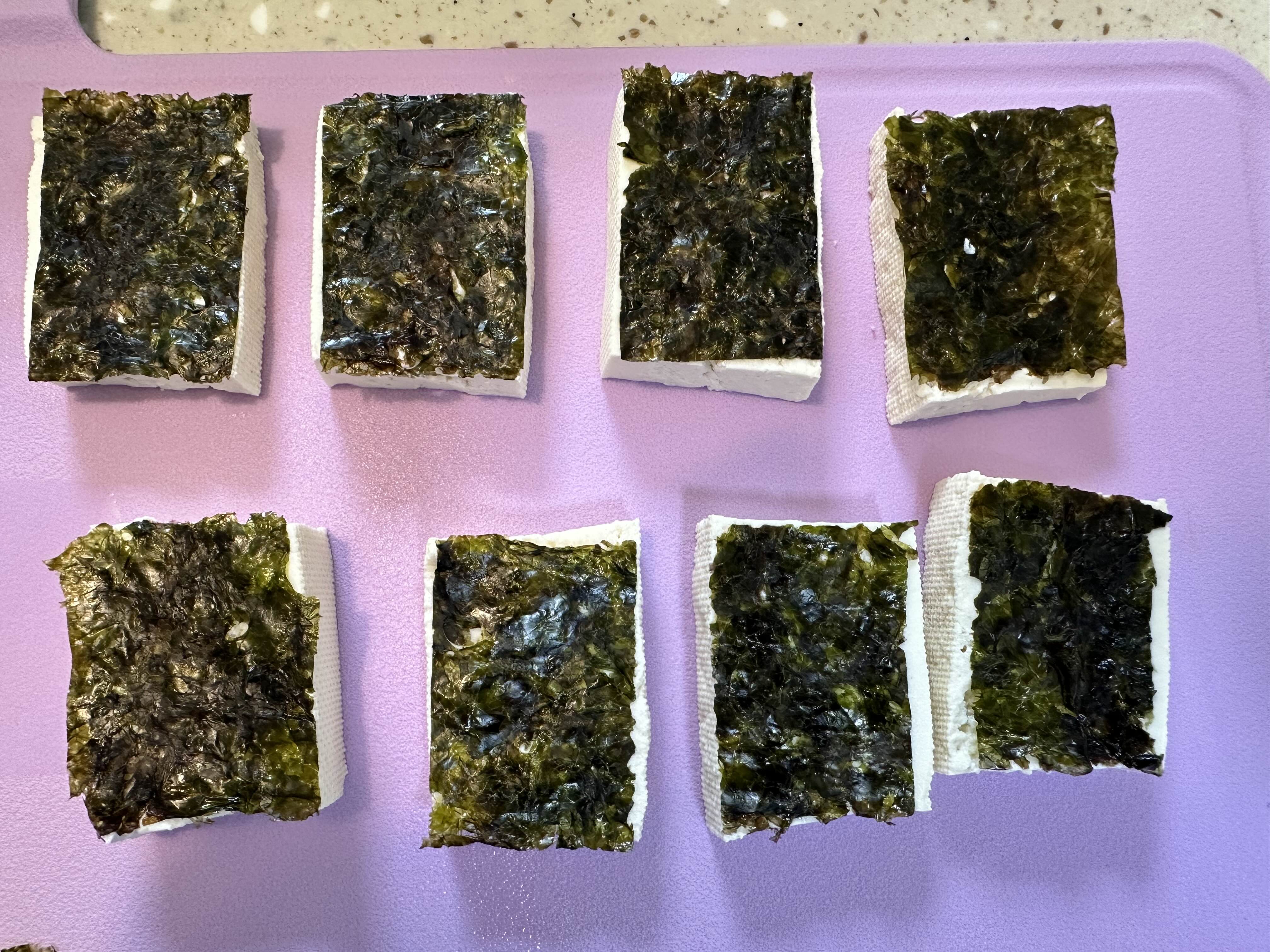 두부 한 면에 김을 꾹 눌러 붙여 주세요.